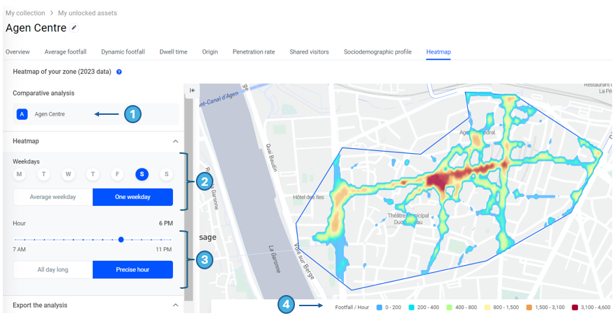 The heatmap analysis is available for all types of assets: addresses, shopping areas, shopping centres, and stores. This analysis will enable you to identify hot and cold spots of your assets and of your competitors.