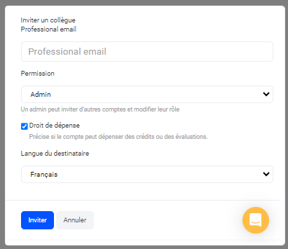 - Cliquez sur “Inviter”, le destinataire recevra alors un email pour créer son compte.