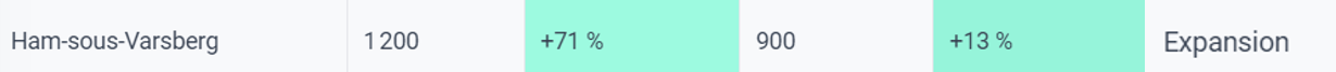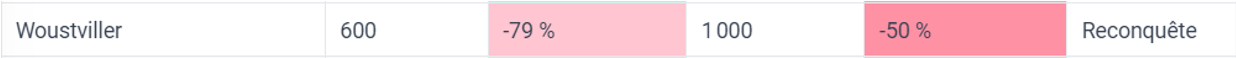 - Leader : Vous avez la meilleure pénétration sur cette zone et n'avez pas de réel concurrent (si un concurrent est présent, il sera indiqué dans la colonne "Top concurrent")